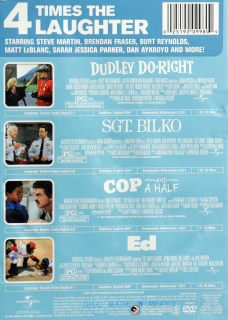 Widescreen. These four comedies will have you in stitches! Collects Dudley Do-Right starring Brendan Fraser and Sarah Jessica Parker; Sgt. Bilko with Steve Martin and Dan Aykroyd; Cop and a Half starring Burt Reynolds; and Ed with Matt LeBlanc. English SDH. Over 6 hours on two DVDs.