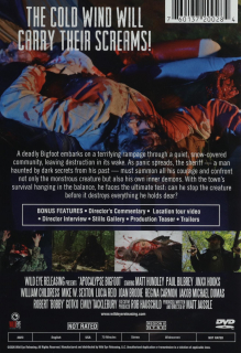 Widescreen. A deadly Bigfoot embarks on a terrifying rampage through a quiet, snow-covered community, leaving destruction in its wake. As panic spreads, the sheriff must summon all his courage to confront the monstrous creature, but also his own inner demons. Not Rated. 70 minutes.