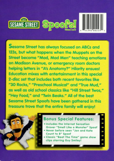 Fullscreen. Education mixes with entertainment in this special two DVD set that includes recent favorites like "30 Rocks," "Preschool Musical" and True Mud," as well as old school classics like "Hill Street Twos," "Hey Food," and "Twin Beaks." All the best Sesame Street Spoofs have been gathered in this treasure trove. 121 minutes.