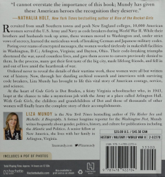 Read by Erin Bennett. Novel. Recruited by the U.S. Army and Navy from small towns and elite colleges, more than 10,000 women served as codebreakers during World War II. While their brothers and boyfriends took up arms, these women moved to Washington and learned the meticulous work of code-breaking. Fourteen hours on 12 CDs.