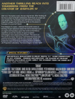 Fullscreen. 2267 A.D. After fending off the fierce attack of Drakh combatants, Earth faces an unseen yet even greater foe. The Drakhs have left behind a microbial, biogenetic plague that will destroy all life on earth in five years if a cure isn't found. Stars Gary Cole. Includes all 13 episodes. CC. Over 9 hours on three DVDs.