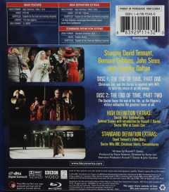 Widescreen. In The End of Time, Part One Christmas Eve, and the Doctor is reunited with Wilf, to face the return of an old enemy. In The End of Time, Part Two the Doctor faces the end of his life, as the Master's victory unleashes the greatest terror of all. Stars David Tennant and Bernard Cribbins. 131 minutes on two Blu-rays.