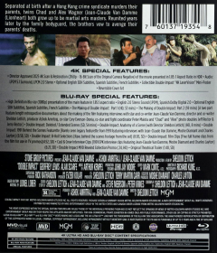 Widescreen. Separated at birth after a Hong Kong crime syndicate murdered their parents, twins Chad and Alex both grew up as martial arts masters. Reunited years later, the brothers vow to avenge their parents' deaths. Stars Jean-Claude Van Damme. Includes UHD Blu-ray and Blu-ray versions. Rated R. English SDH. 110 minutes.