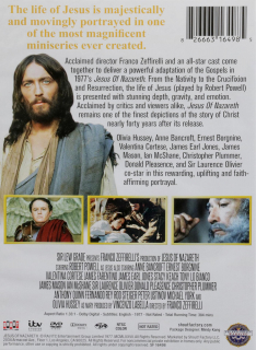 Fullscreen. Acclaimed director Franco Zeffirelli and an all-star cast deliver a powerful adaptation of the Gospels in 1977's miniseries. From the Nativity to the Crucifixion and Resurrection, the life of Jesus is presented with stunning depth, gravity, and emotion. Stars Robert Powell, Olivia Hussey, and Anne Bancroft. Over six hours on two DVDs.