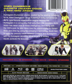 Widescreen. Humagears created by the leading company of AI, Hiden Intelligence, serve humanity's every convenience. But a cyber-terrorist organization begins hacking the Humagears in a conspiracy that turns them into monsters. In Japanese with English subtitles. Over 21 hours on eight Blu-rays.
