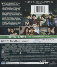 Widescreen. Greed and class discrimination threaten the newly formed symbiotic relationship between the wealthy Park family and the destitute Kim clan. Rated R. In Korean with English subtitles. 132 minutes.