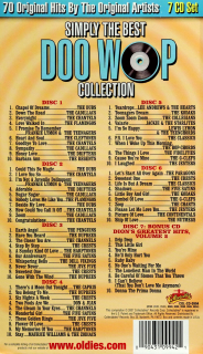 Collects 70 tracks, including Down the Road by The Cadillacs; Barbara Ann by The Regents; Congratulations by The Chantels; These Golden Rings by The Jive Five; Let's Start All Over Again by The Paragons; Zoop by The Charts; and more. Seven CDs.