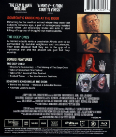 Widescreen. In Someone's Knocking at the Door, a pair of outrageously twisted serial killers used shocking, brutal acts to start killing off a group of drugged-out med students. In The Deep Ones, a married couple rents out a beachside Airbnb to discover that they are in the grip of a mysterious cult and the ancient sea god that they worship. Not Rated. 163 minutes.