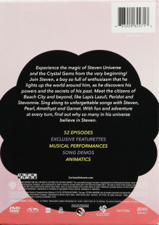 Widescreen. Experience the magic of Steven Universe and the Crystal Gems from the very beginning! Join Steven as he discovers his powers and the secrets of his past. Meet the citizens of Beach City and beyond, like Lapis Luzuli, Peridot and Stevonnie. Collects 52 episodes. English SDH. Over nine hours on 3 DVDs.