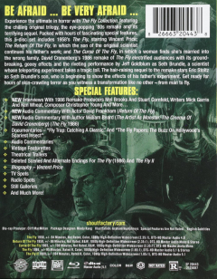 Widescreen. Experience the ultimate in horror with this must-have set. Collects the original trilogy--1958's The Fly starring Vincent Price; The Return of the Fly; and The Curse of the Fly. Also includes David Cronenberg's 1986 remake, The Fly starring Jeff Goldblum and The Fly II starring Eric Stoltz. Not Rated and Rated R. In Color and B&W. Over 8 hours on five Blu-rays.