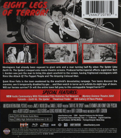 Widescreen. Quiet River Falls is the town awakened by an arachnid's devastating rampage. Two teens discover the monster, see it temporarily disabled by gas--and then watch in terror as it unfolds its eight legs of doom. Will our heroes survive? Or will the entire town fall prey? Not Rated. In B&W. English SDH. 73 minutes.