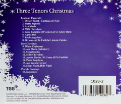 This collection includes Ingemisco by Placido Domingo; O Holy Night, Ava Maria, Agnus Dei, Panis Angelicus, and O Come All Ye Faithful by Luciano Pavorotti; and White Christmas, Ave Verum Corpus, and Silent Night, Holy Night by Jose Carreras.