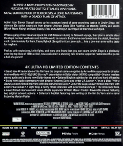 A battleship has been sabotaged by nuclear pirates out to steal its warheads. Now, surrounded by terrorists, a lone man stands with a deadly plan of attack. Stars Steven Seagal. Rated R. English SDH. 103 minutes. UHD Blu-ray.