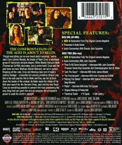Widescreen. John Carpenter's Vampires is a brutal, action-packed horror film where a team of vampire slayers, led by the rugged Jack Crow, wage a violent war against a master vampire in the New Mexico desert. It's a gritty, high-stakes battle for survival. Stars James Woods. Rated R. Includes UHD Blu-ray and Blu-ray versions. English SDH. 108 minutes.