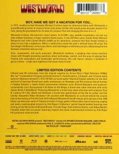 Widescreen. For $1,000 a day, vacationers can indulge whims at the theme park called Westworld. It's all safe: the park's lifelike androids are programmed to never harm customers. But not all droids are getting with the program. Includes a collector's perfect bound booklet and a double-sided fold-out poster. Starring Yul Brynner and James Brolin. English SDH. 89 minutes. Slipcased.