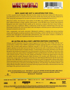 Widescreen. For $1,000 a day, vacationers can indulge whims at the theme park called Westworld. It's all safe: the park's lifelike androids are programmed to never harm customers. But not all droids are getting with the program. Includes a collector's perfect bound booklet and a double-sided fold-out poster. Starring Yul Brynner and James Brolin. English SDH. 89 minutes. Slipcased.